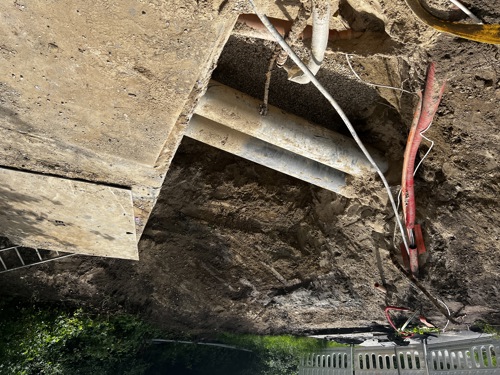 Næste skridt i projektet er, at det underjordiske betonkammer skal nedbrydes og fjernes. En tidskrævende opgave, som betyder, at der i den næste måneds tid vil være en vis støjende aktivitet i området i dags-timerne. Herefter skal de nye moderne rør installeres, inden første etape af renoveringen forventes afsluttet inden udgangen af juli.